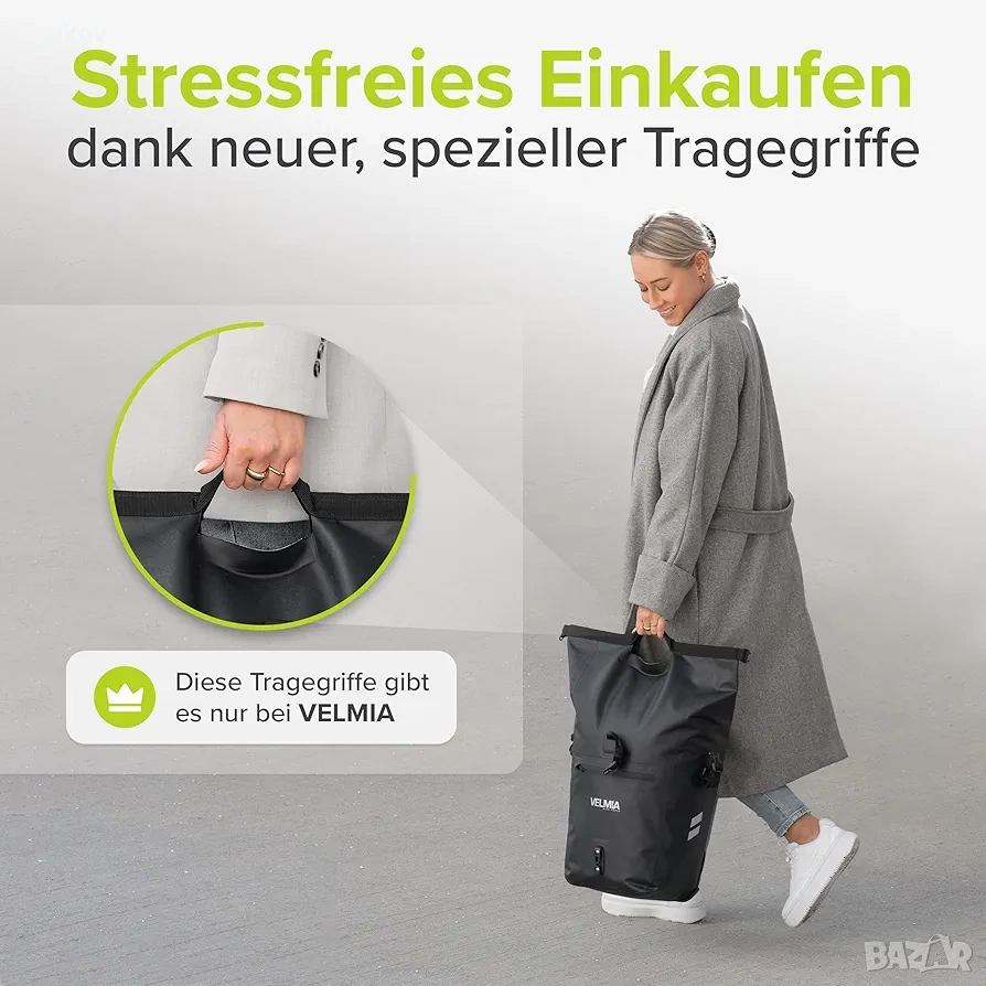 Велосипедна чанта VELMIA за багажник, с практична дръжка за носене, 100% водоустойчива