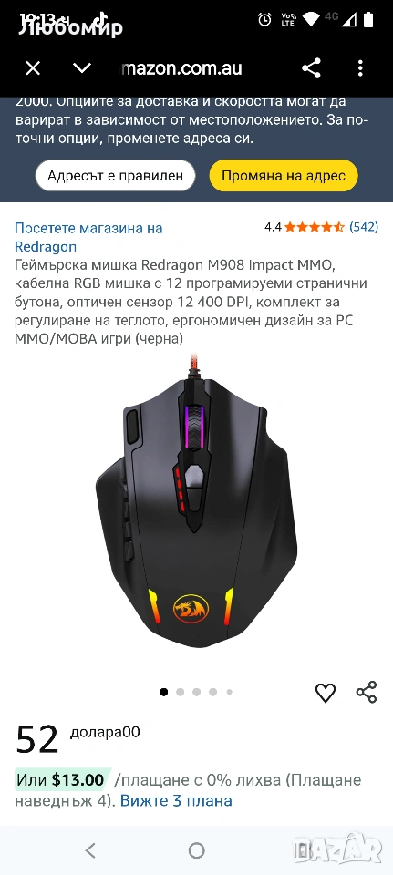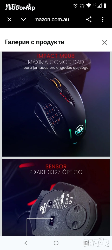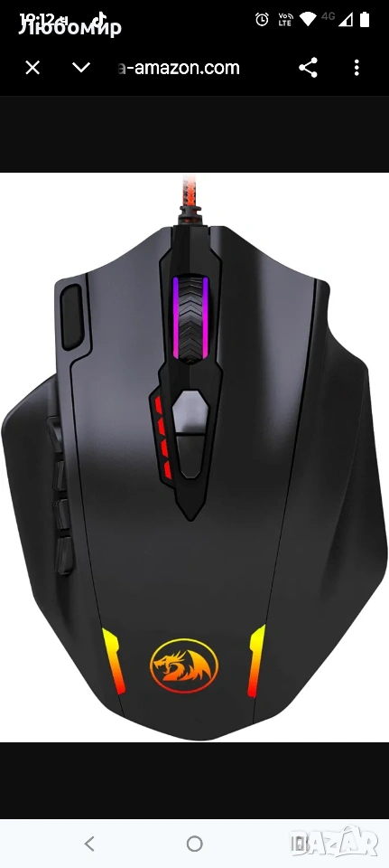 Геймърска мишка Redragon M908 Impact MMO, кабелна RGB мишка с 12 програмируеми странични