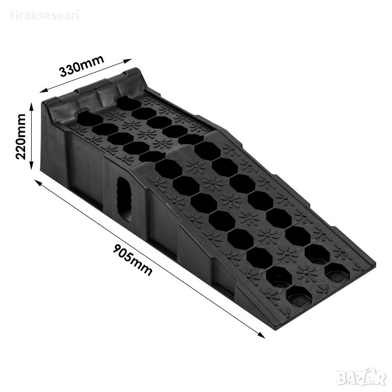 Противоплъзгащият профил осигурява отлично сцепление с гумите, а специалната конструкция позволява сигурно позициониране на автомобила на определена височина.