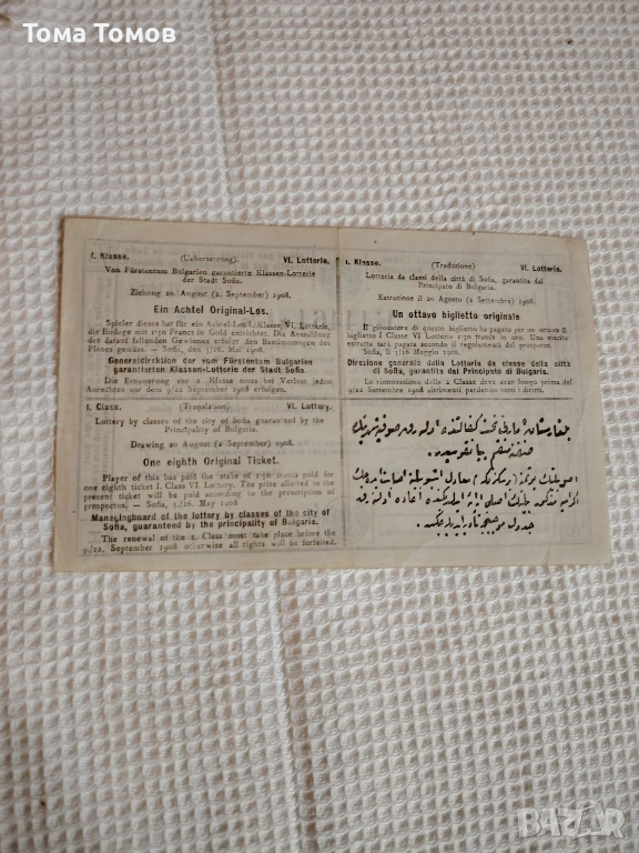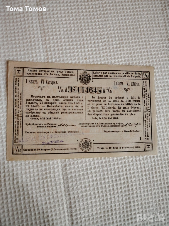 Лотариен билет от 1908 г. → Обява 53622810