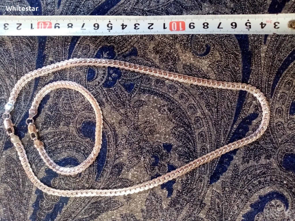 Чудесен мъжки комплект от посребрени гривна и ланец. Артикулите са чисто нови, извадени от пликчето само за снимка, с качествено сребърно покритие - идентични с оригиналните сребърни накити. Доставка с Еконт и Спиди, при уславията на наложен платеж.