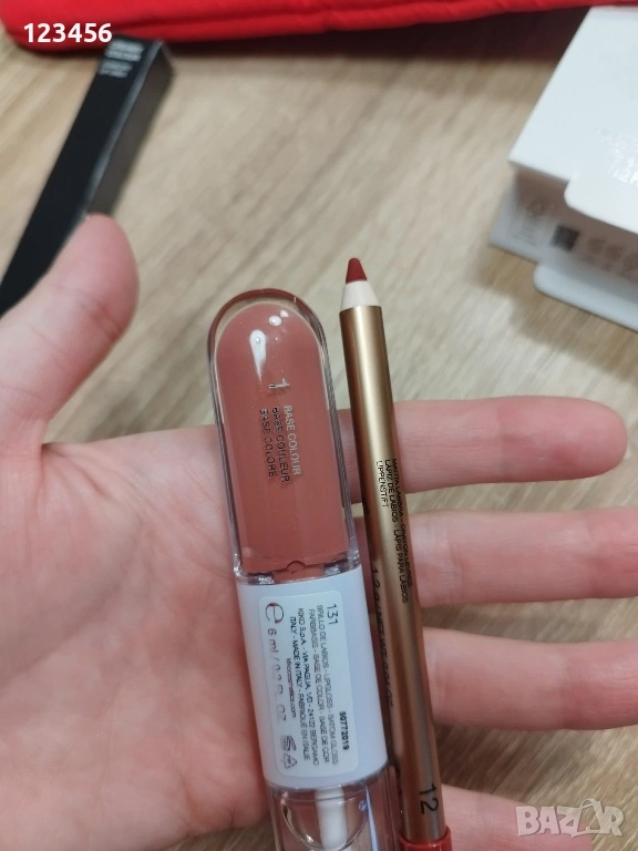 Подаръчен комплект за грим за устни, включващ лимитирана серия червило и гланц за устни 2 в 1 и молив за устни, стилен червен несесер. Комплектът е нов, цена 14 евро.