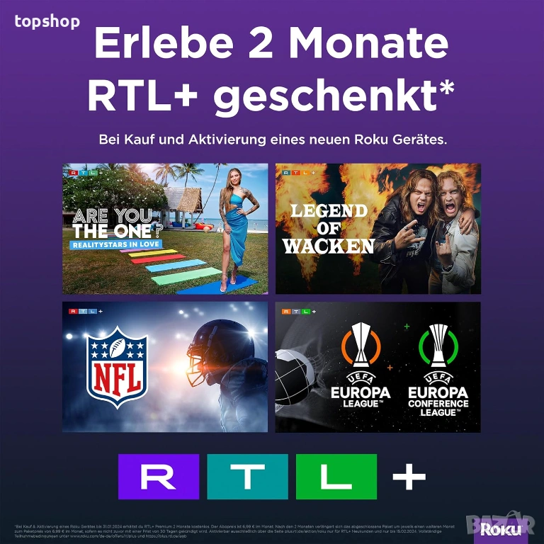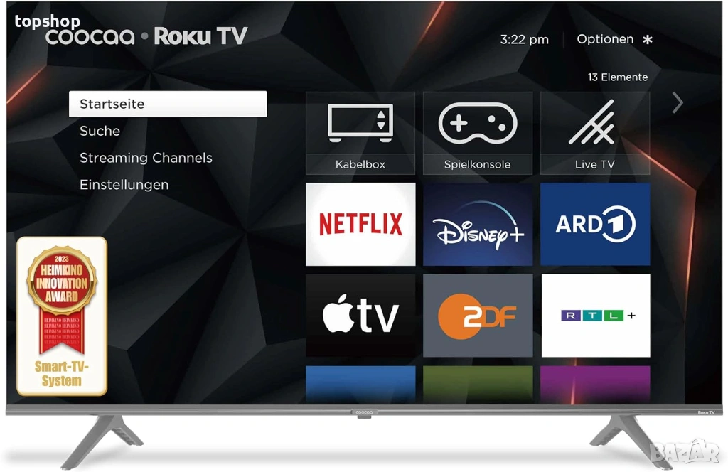 Smart TV с Roku OS: Една от най-интуитивните смарт системи в света. Предлага бърз достъп до всички популярни приложения като Netflix, YouTube, Prime Video, Disney+ и много други.