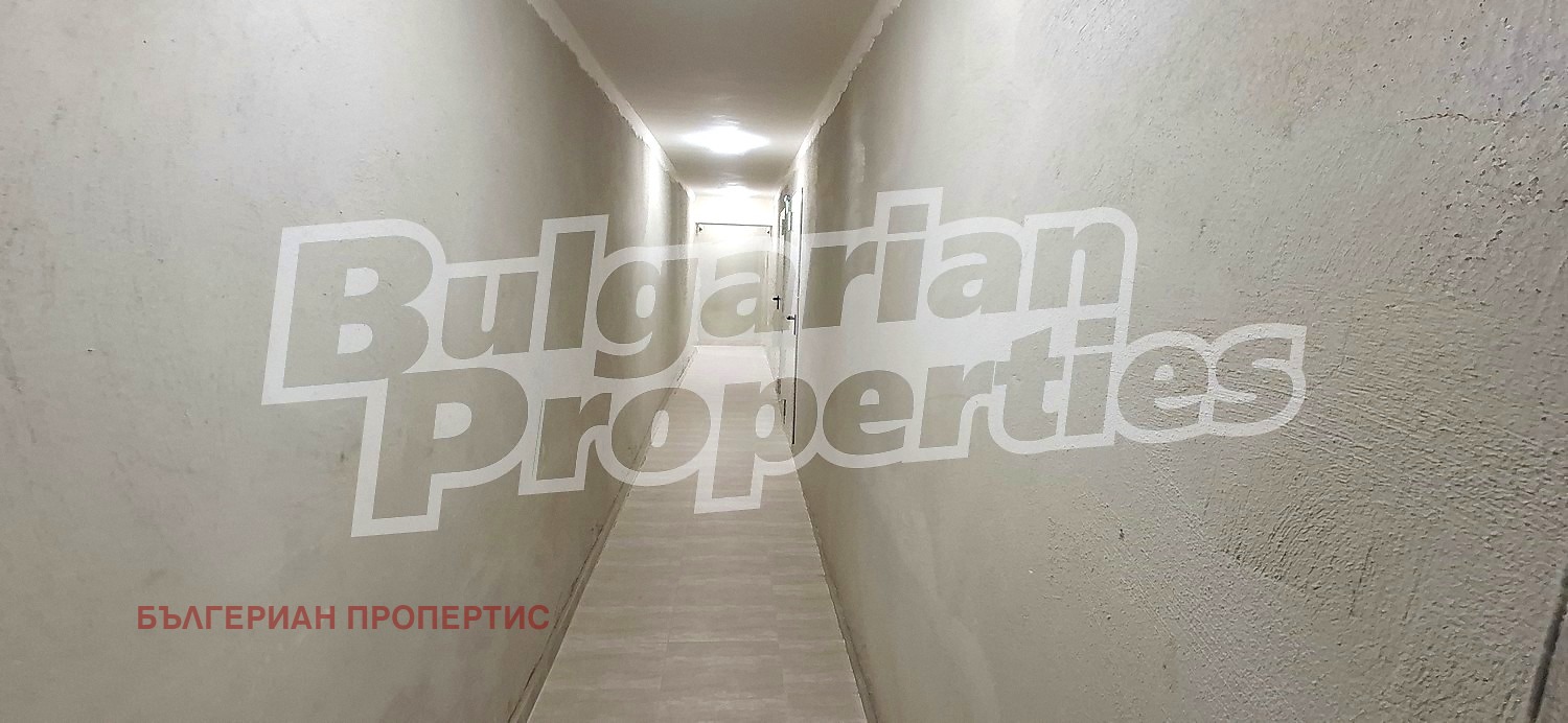 Имотът се намира на сутеренен етаж и е с площ от 26 кв.м. Разпределението включва основно помещение, входно антре и баня с тоалетна. Степента на завършеност е на тапа изградени ВиК инсталации, електроинсталация, вентилационна система и поставена домофонна уредба.