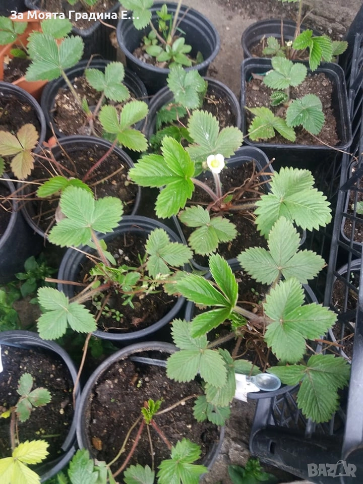 Горска Ягода Сорт Регина Цена за 1 саксия 2€ Многогодишно растение, високо 30 – 35 см., с дълги пълзящи стъбла. Целогодишно плододаващ сорт с бели цветове, събрани в съцветия, върху разклонени дръжки. Плодчетата са многобройни тъмночервени, дребни до средни (5 – 8 гр.) Растенията са в контейнери, което позволява засаждането им да се извършва почти целогодишно. Много от растенията променят вида си през периодите на своята вегетация, но тук в сайта със снимки се представят в най-атрактивния им вид. Повечето снимки в сайта ни покзват как ще изглеждат растенията след определен период и положени необходимите грижи. Моля разгледайте и другите ни растения в сайта. Благодарим че избрахте нас 😊 Тел. 0877977519