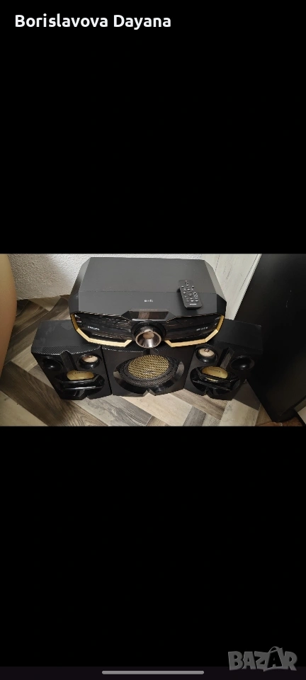 в отлично състояние само и единствено липсва капачето от зад на дистанционно то управление свири невероятно супер качествен звук плус уникален Бас благодарение на 8 инчовият субуфер 🔊