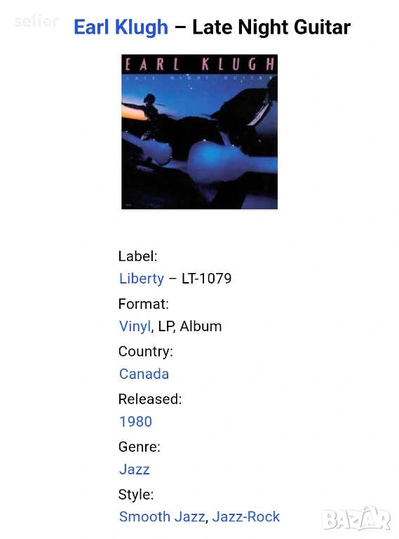 Earl Klugh ‎– Late Night Guitar Издание 🇨🇦 CANADA 1980г  Стил:SMOOTH JAZZ  Състояние на винила:едн, снимка 1 - Грамофонни плочи - 53623969 Earl Klugh ‎– Late Night Guitar Издание 🇨🇦 CANADA 1980г  Стил:SMOOTH JAZZ  Състояние на винила:едн, снимка 2 - Грамофонни плочи - 53623969 Earl Klugh ‎– Late Night Guitar Издание 🇨🇦 CANADA 1980г  Стил:SMOOTH JAZZ  Състояние на винила:едн, снимка 3 - Грамофонни плочи - 53623969 Earl Klugh ‎– Late Night Guitar Издание 🇨🇦 CANADA 1980г  Стил:SMOOTH JAZZ  Състояние на винила:едн, снимка 4 - Грамофонни плочи - 53623969 1/4