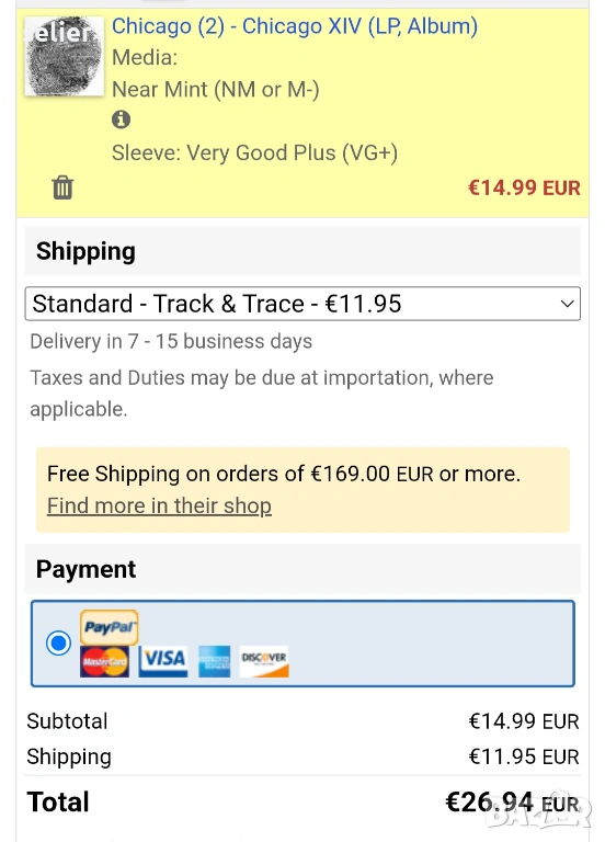 Състояние на обложката:VG++