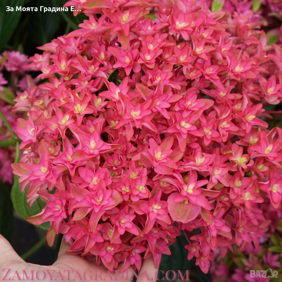 Хортензия Принцеса Даяна – Hydrangea princess Diana Цена за 1 саксия 13,50€ Студоустойчива Хортензията е с красиви и едри цветове във формата на звездици.Този вид хортензия променя своя цвят от бледо розово до цикламено.Достига височина до 90см.Хортензията е подходяща за отглеждане в големи саксии или директно в градинатa Растенията са в контейнери, което позволява засаждането им да се извършва почти целогодишно. Много от растенията променят вида си през периодите на своята вегетация, но тук в сайта със снимки се представят в най-атрактивния им вид. Повечето снимки в сайта ни покзват как ще изглеждат растенията след определен период и положени необходимите грижи. Моля разгледайте и другите ни растения в сайта. Благодарим че избрахте нас 😊 Тел. 0877977519