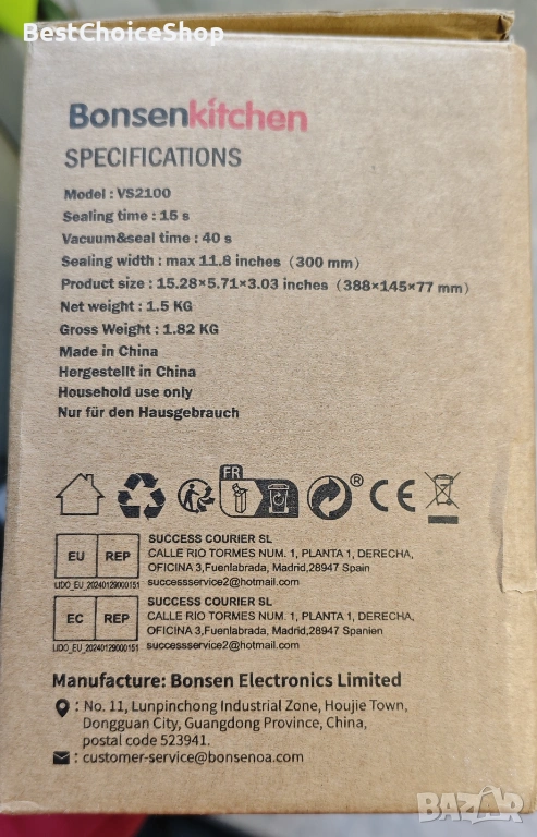 машина за вакумиране на храна Bonsenkitchen VS2100