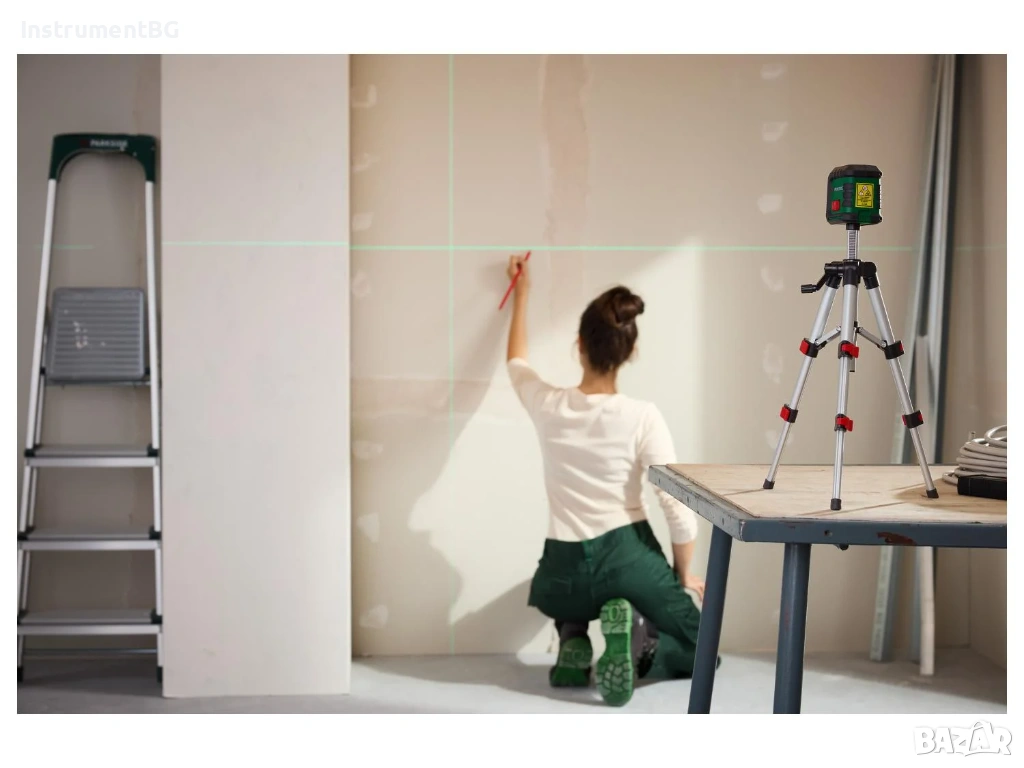 - Зелен лазер за прецизна, добре видима проекция на правоъгълни ориентировъчни линии