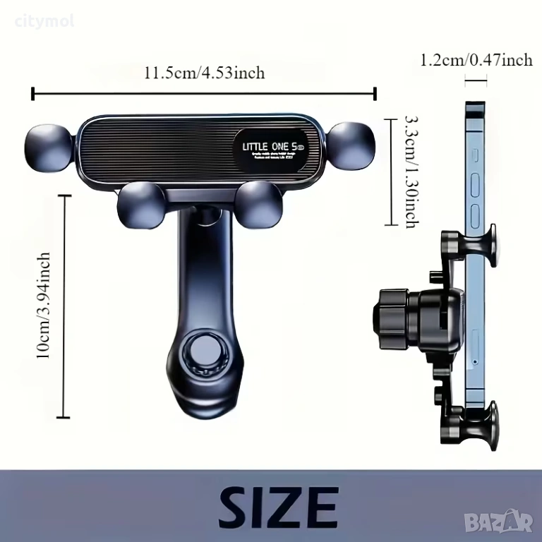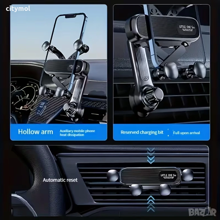 Стойката за кола Little One 5 е иновативен продукт с отличен и модерен дизайн. Под влияние на теглото на телефона, рамената автоматично се адаптират към ширината на телефона. Благодарение на дизайна си, стойката може да се управлява с една ръка, като същевременно е стабилна, тъй като поддържа телефона в четири точки.