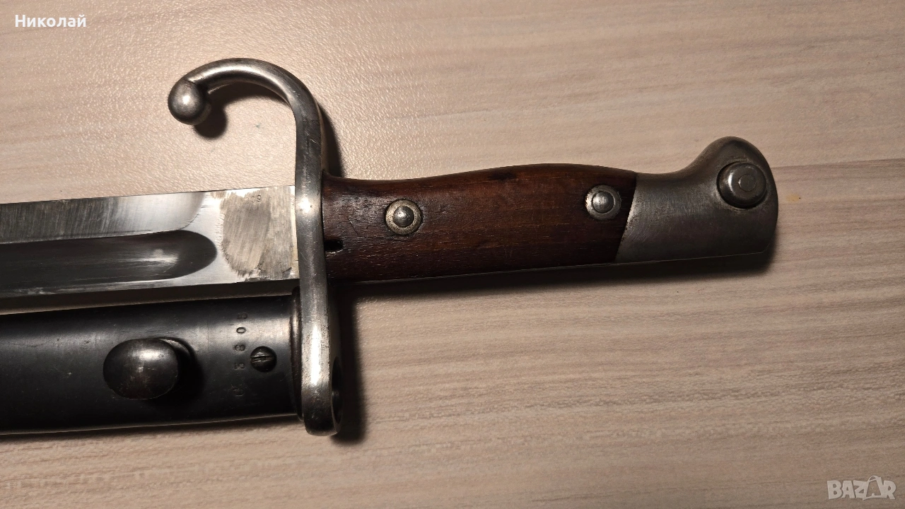 Щик, нож за аржентински маузер м1891 с дървена дръжка → Обява 53624501