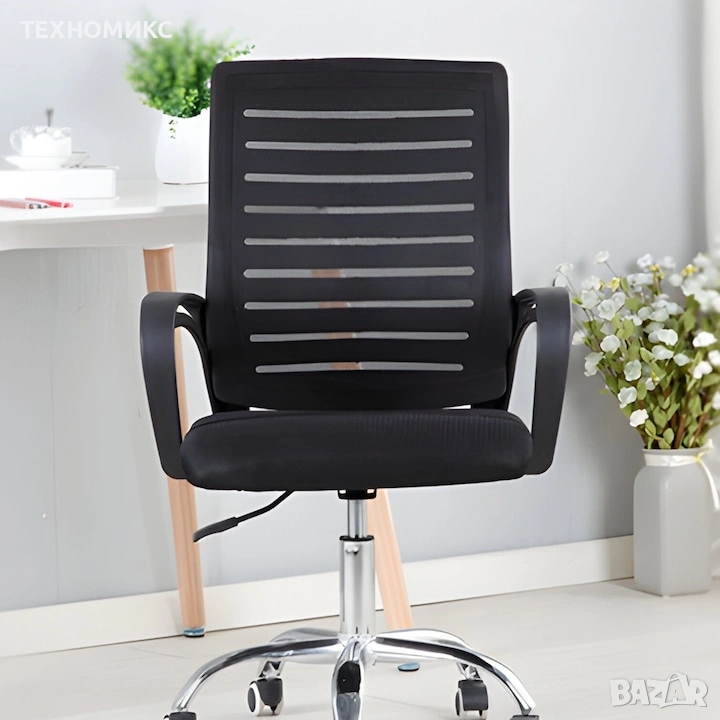 Въртящ се офис стол - регулируема височина и ергономични подлакътници