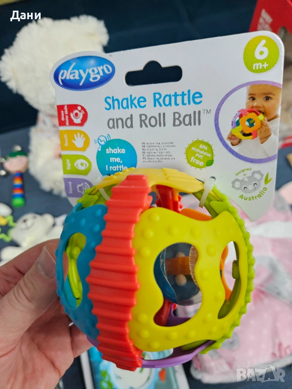 6. Разноцветна топка дрънкалка Playgro - Shake Rattle and Roll Ball