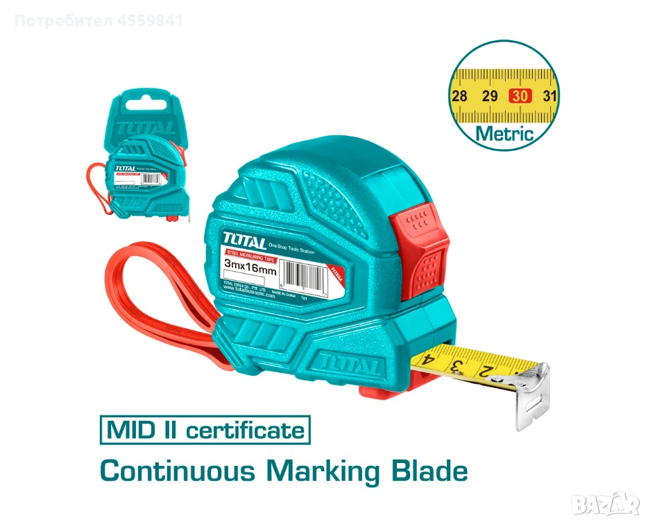 Метрична ролетка с уникален дизайн и здрав корпус от ABS пластмаса.