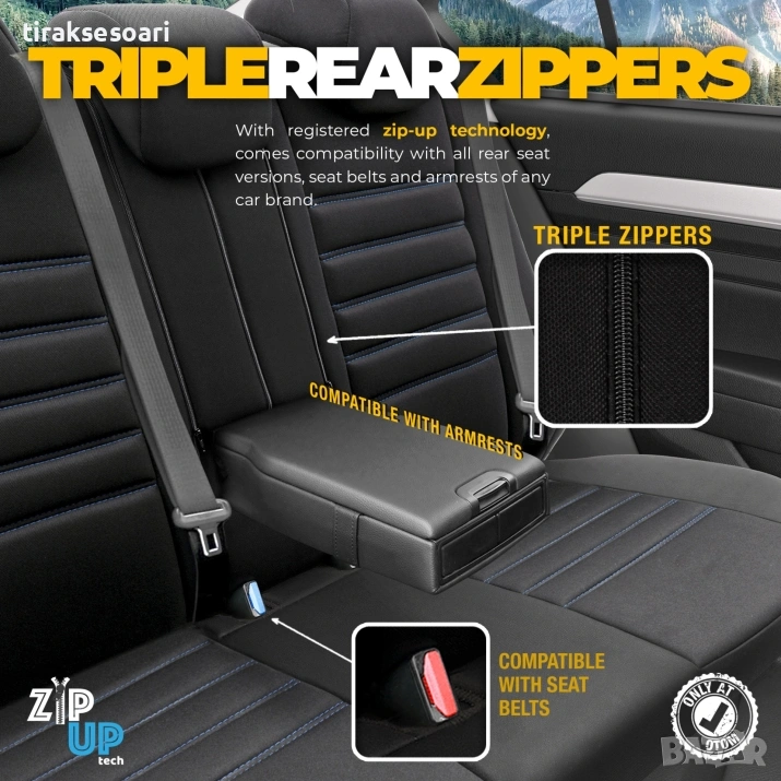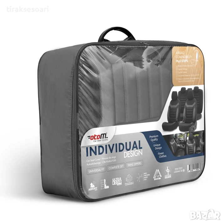 тапицерия OTOM, OTOM Individual Design, луксозна тапицерия, калъфи за седалки, универсални калъфи, автомобилна тапицерия, текстил и еко кожа, черна със син шев, спортна тапицерия, калъфи за SUV, airbag съвместими калъфи, 7 слойна тапицерия