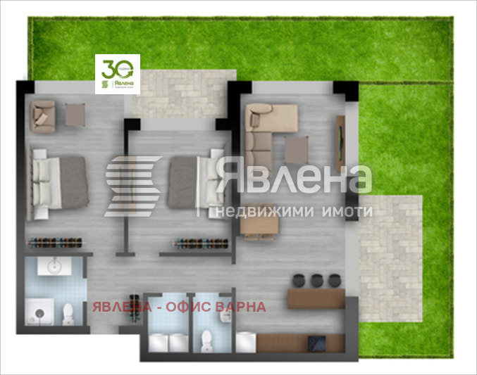 НЕ СЕ ДЪЛЖИ КОМИСИОН КЪМ АГЕНЦИЯТА! Тристаен апартамент в луксозен комплекс в близост до Св. Св. Константин и Елена. Естествена паркова среда на границата с Ботаническата градина. Жилището се състои от слънчева дневна, две спални, две бани и тоалетни и 40кв.м зелен двор около апартамента. Апартаментите ще бъдат луксозно завършени до ключ, бани напълно оборудвани. Комплексът предлага качествен и здравословен начин на живот, отговарящ на очакванията за по-висок стандарт, сигурност, комфорт, зеленина и удобства. На територията на комплекса ще има детска градина, частно училище, открит басейн със солена вода, сауна , парна баня, фитнес, спортни игрища, детски площадки и зала за йога. Предимства: - Сградата е с енергиен клас 'А' - Технология за омекотяване на водата магазини, ресторанти, Дентална клиника, подземни паркинги и гаражи - Smart системи за управление за бързи и безшумни гаражни врати- аптека, салон за красота. (yavlenaCOM/160239).