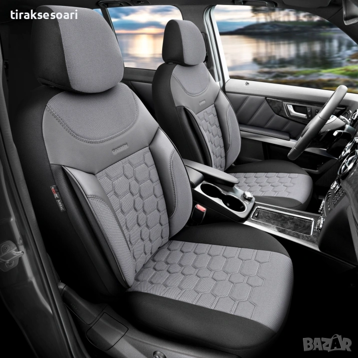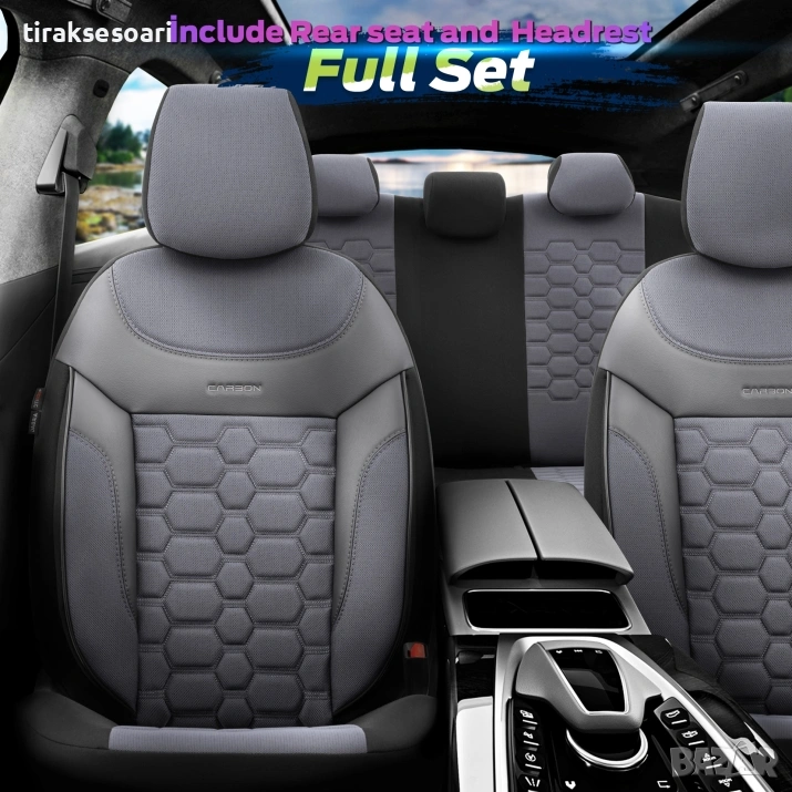 Премиум комплект тапицерия OTOM Carbon Design в елегантна сива цветова комбинация със сив шев. Моделът предлага модерна карбон визия, ортопедичен комфорт и високо ниво на защита за интериора на автомобила.