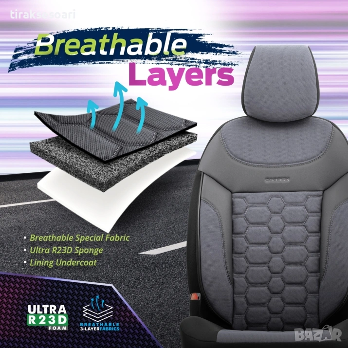 тапицерия OTOM, OTOM Carbon Design, луксозна тапицерия, сива тапицерия, карбон дизайн, калъфи за седалки, универсални калъфи, автомобилна тапицерия, текстил и еко кожа, сив шев, airbag съвместими калъфи, 7 слойна тапицерия