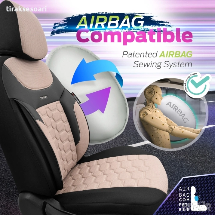 тапицерия OTOM, OTOM Carbon Design, луксозна тапицерия, карбон дизайн, бежово черна тапицерия, калъфи за седалки, универсални калъфи, автомобилна тапицерия, текстил и еко кожа, бежов шев, airbag съвместими калъфи, 7 слойна тапицерия