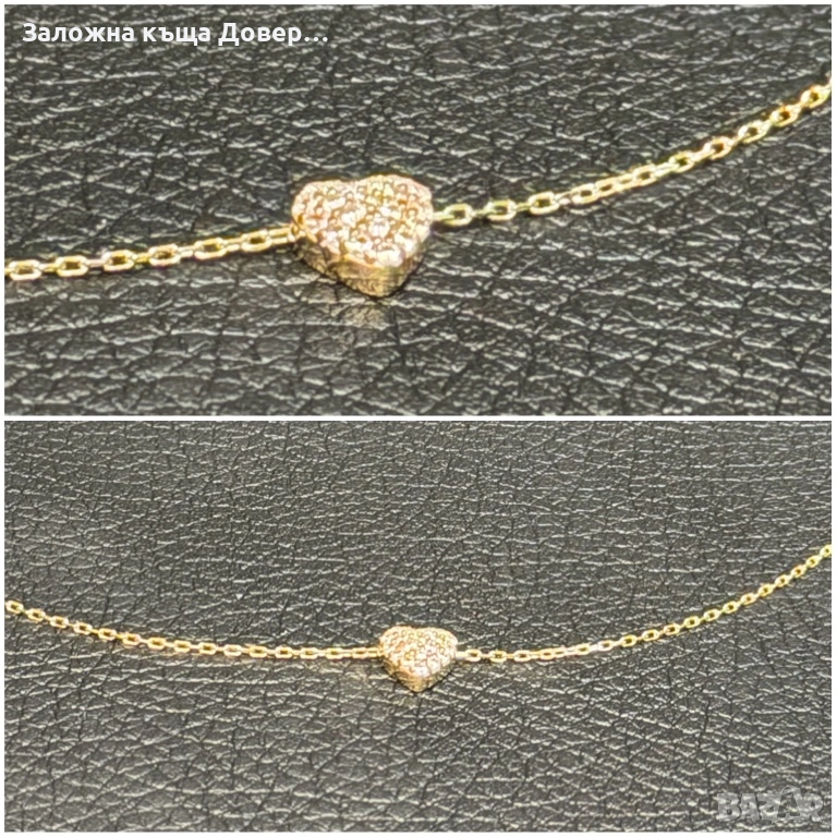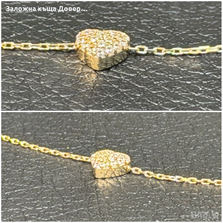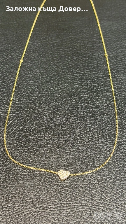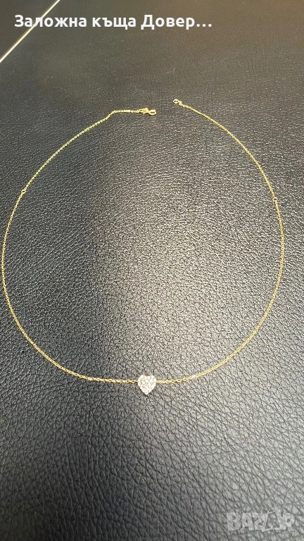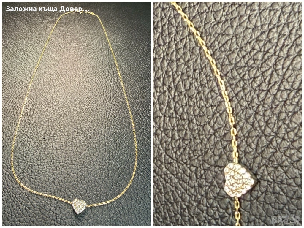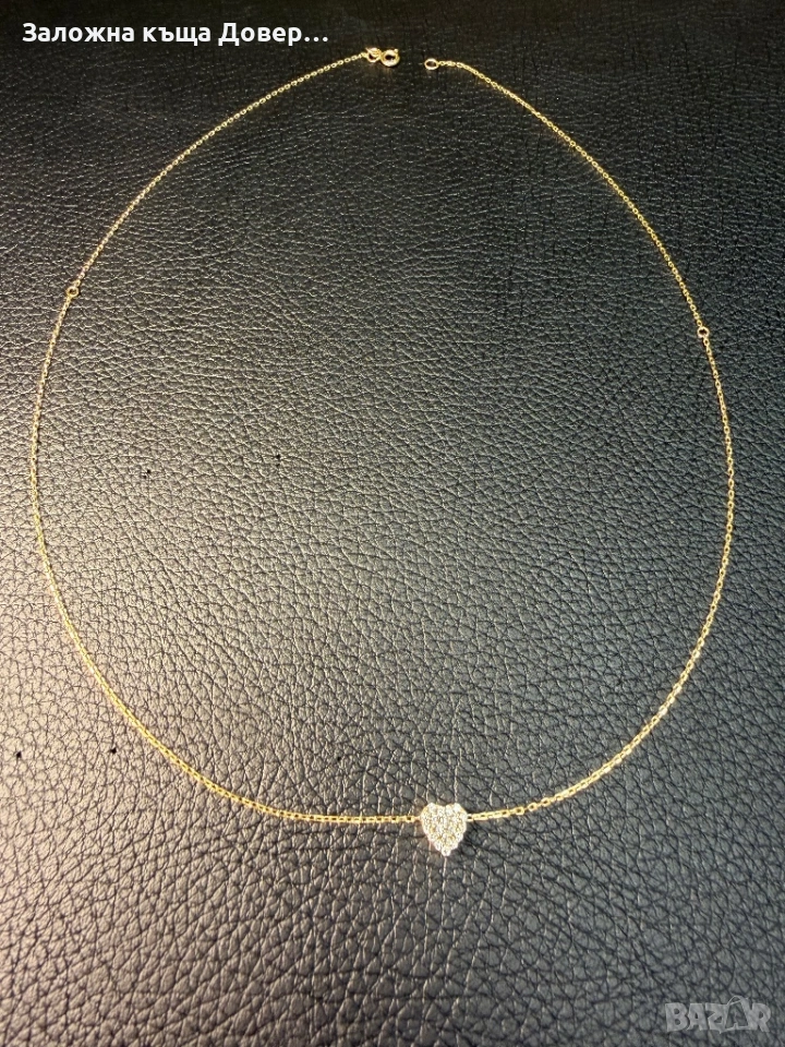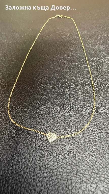 Ново Фино колие сърце с кубични циркони от жълто злато 14К чисто ново gold 585