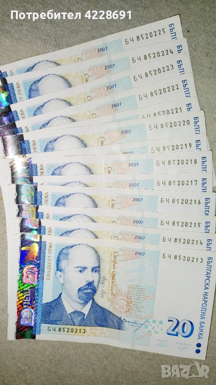 Колекция от 13 поредни номера банкноти от 20 лв. → Обява 53625479