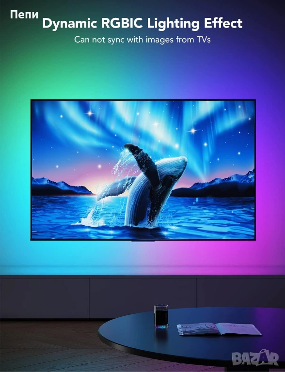 Този интелигентен LED подсветен комплект превръща обикновената ти телевизия в цветно шоу, което оживява с всяка сцена, музика или гласова команда!