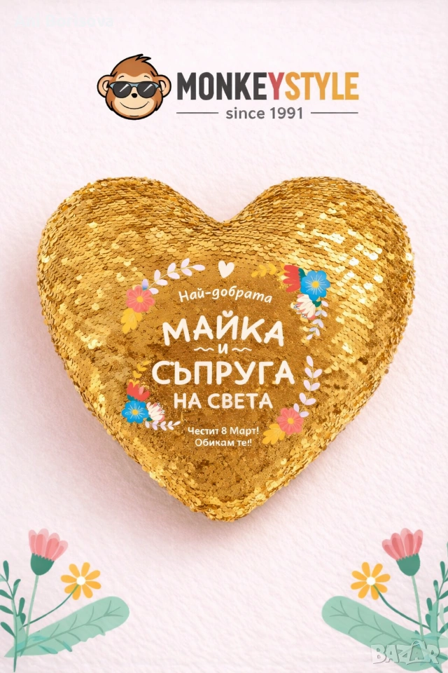 🔸 Възможни продукти: ✔️ Сърце от пайети с надпис
