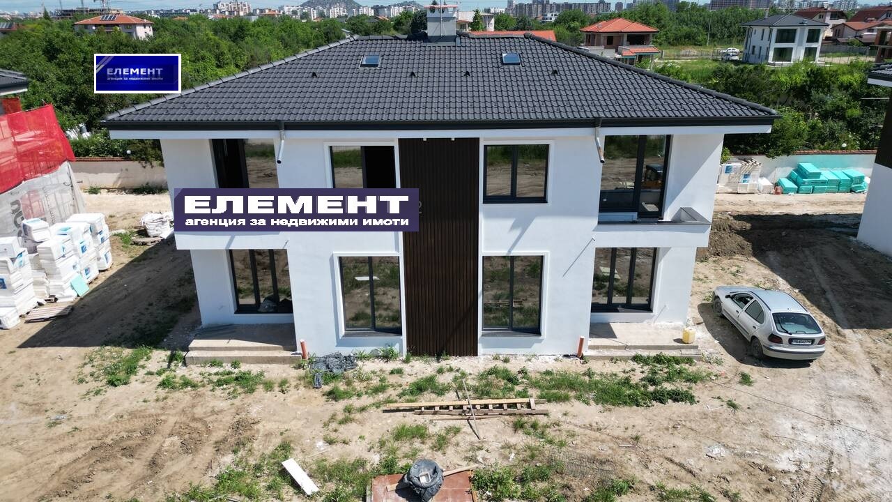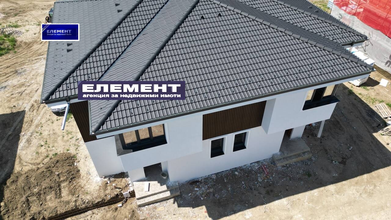 Къщата е НАПЪЛНО ДОВЪРШЕНА подове и стени ,готови бани , ел. до ключ, ВиК до тапа, 82мм. Rehal PVC с троен стъклопакет 42мм., блиндирана входна врата.