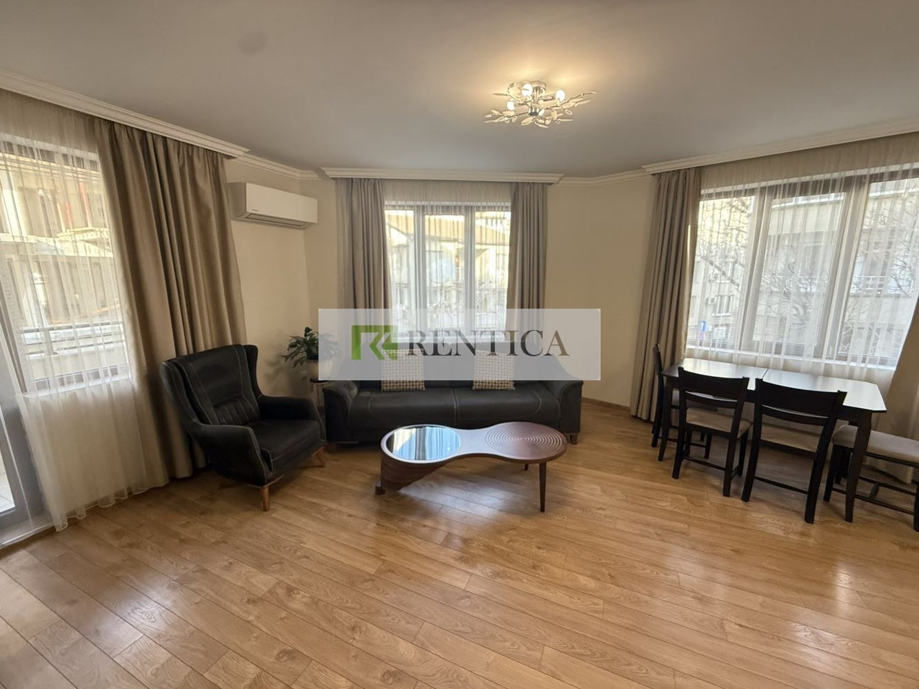 ОФЕРТА 8428 ✅ Rentica.bg предлага под наем ✔ПРОСТОРЕН ✔️отлично обзаведен, ✔️ТРИСТАЕН апартамент, намиращ се в централната част на град Варна, в района на Лятно Кино Тракия в близост до църквата Св. Прокопий Варненски . Апартаментът е разположен в тухлена сграда на трети жилищен етаж. Състои се от ПРОСТОРНА всекидневна в едно с трапезария и кухня оборудвана с всичко необходимо за домакинството, ✔ДВЕ спални, баня и тоалетна, тераса. Отоплението е с ТРИ климатика. Отдава се дългосрочно. Опция ✔️ПАРКОМЯСТО - 200 евро на месец.