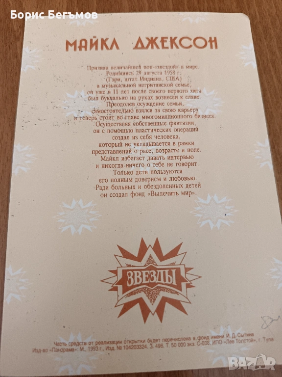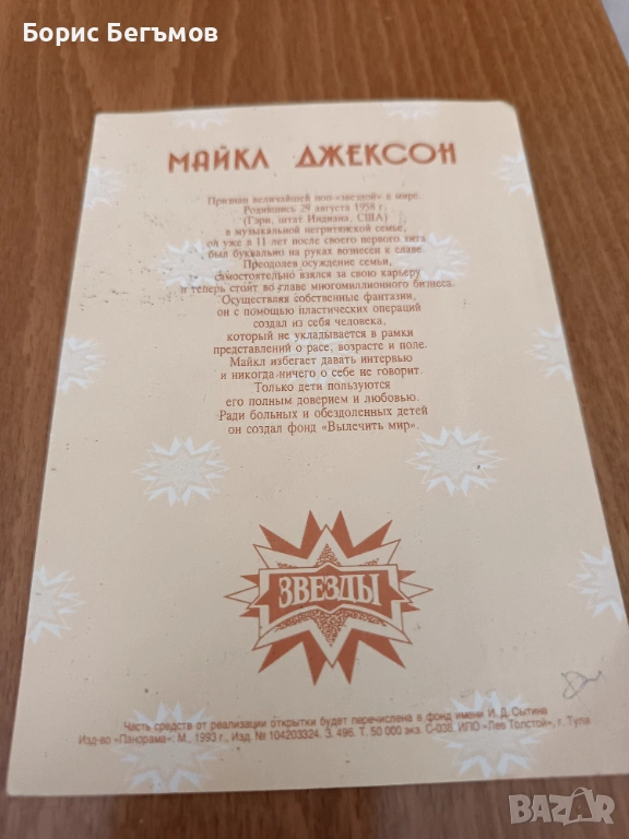 Картичка Майкъл Джексън/Michael Jackson, снимка 1 - Колекции - 53626552 Картичка Майкъл Джексън/Michael Jackson, снимка 2 - Колекции - 53626552 Картичка Майкъл Джексън/Michael Jackson, снимка 3 - Колекции - 53626552 Картичка Майкъл Джексън/Michael Jackson, снимка 4 - Колекции - 53626552 1/4