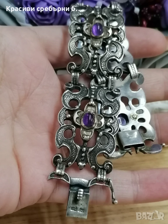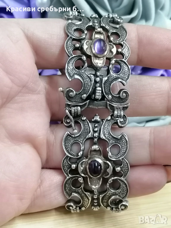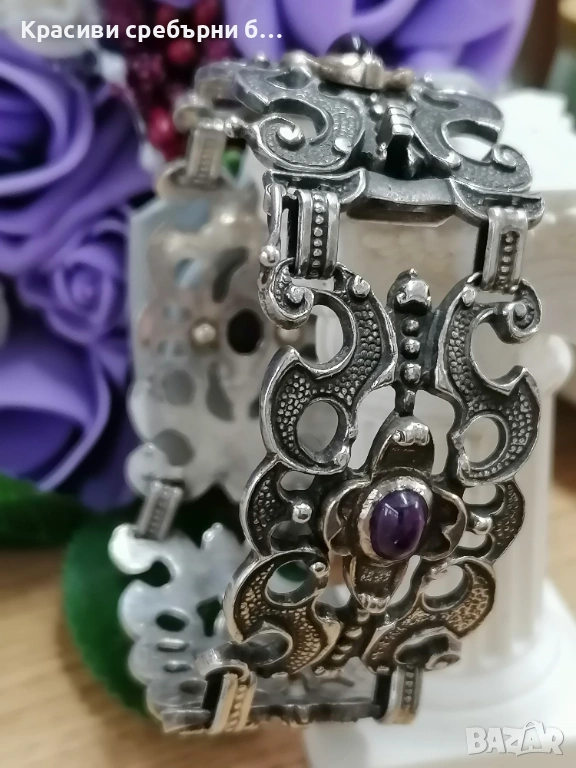 Сребърна гривна стил Art Deco с аметист 💜 → Обява 53626621