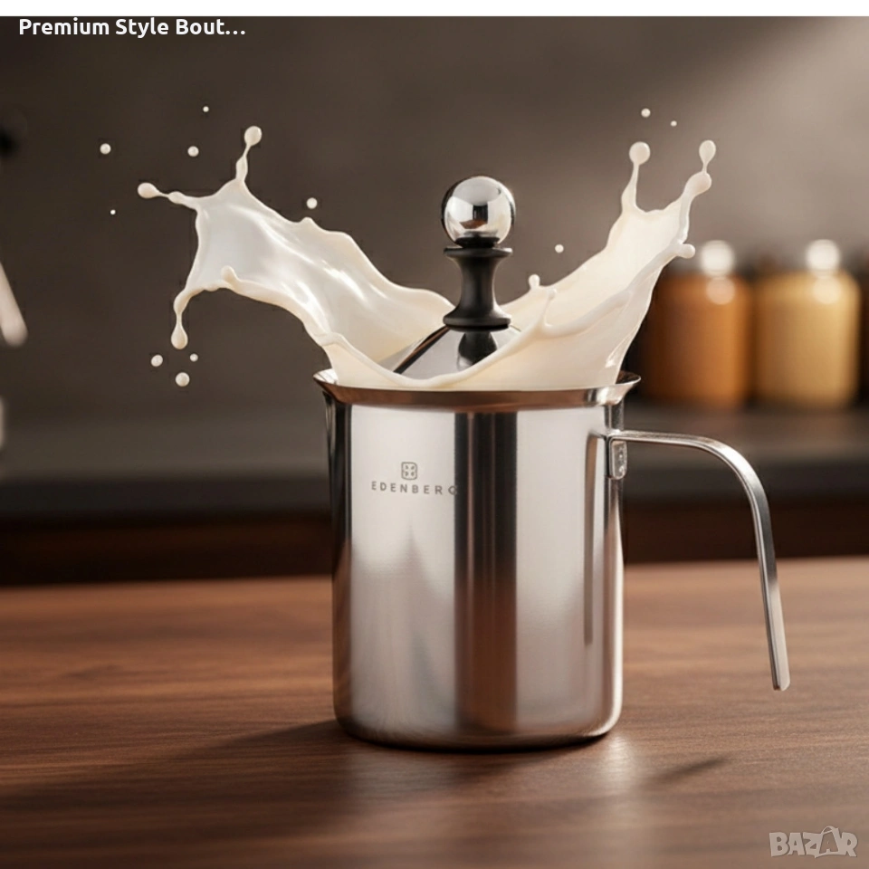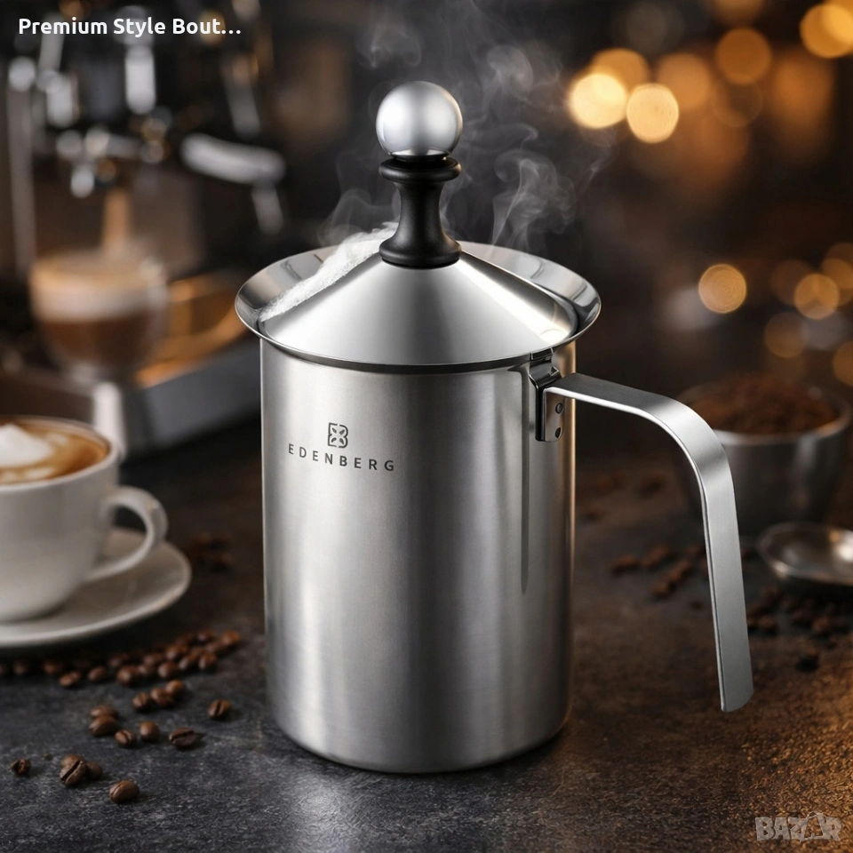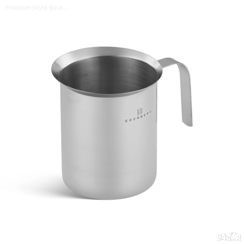 Ръчен уред за разпенване на мляко Edenberg, неръждаема стомана, мерителна скала, 400мл / 800мл