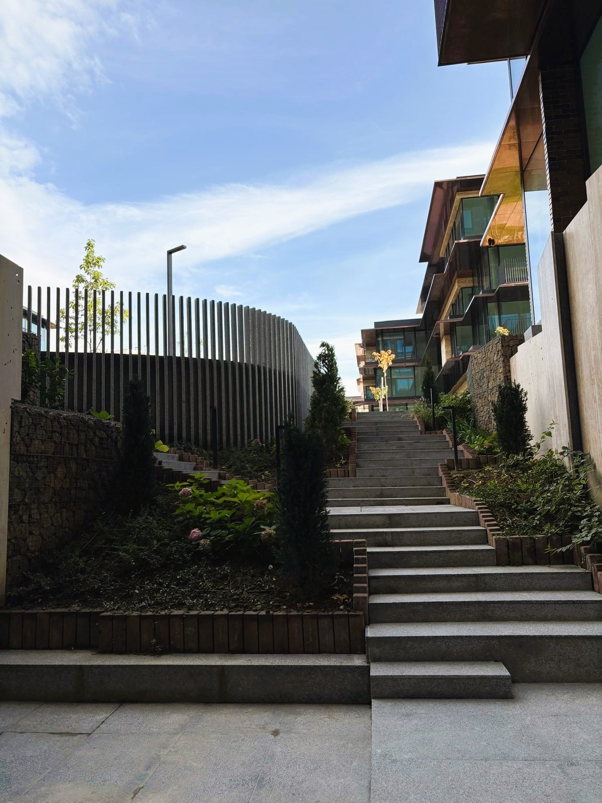 Комплексът е от затворен тип с денонощна охрана, контролиран достъп и поддържани зелени площи. Разполага с йога център, фризьорски салони, офиси и бистро, а в района има всичко необходимо градски транспорт, мол, банка, химическо чистене, детски площадки и магазини. Близостта до планината създава усещане за спокойствие и връзка с природата.