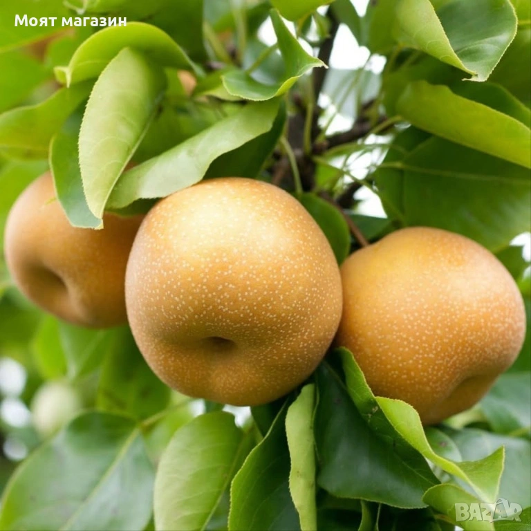 Азиатска круша Наши (Pyrus pyrifolia) Студоустойчива Цена 15,49 € 📜 Произход: Сортът Chojuro (често изписван и като Chōjūrō или Чоджуро) е японски сорт круша от вида „азиатска круша“ (Pyrus pyrifolia). Разпространен е в Япония, Китай, Корея, а също така и в някои европейски страни. 🍐 Характеристики на плода: Плодовете са кръгли, леко сплеснати, приличат повече на ябълка, отколкото на типична европейска круша. Кората е златисто-кафява до бронзова, понякога с ръждив оттенък. Месото е хрупкаво, сочно и сладко, с приятен аромат и свеж вкус. Узрява обикновено в края на август – началото на септември. 🌳 Дървото: Среднорастящо, устойчиво на студ. Добре се приспособява към различни климатични условия. Плододава редовно и обилно. 📦 Употреба: Използва се основно за консумация в прясно състояние, но е подходящ и за десерти и салати поради хрупкавата си текстура. Растенията са в контейнери, което позволява засаждането им да се извършва почти целогодишно. Много от растенията променят вида си през периодите на своята вегетация, но тук в сайта със снимки се представят в най-атрактивния им вид. Повечето снимки в сайта ни покзват как ще изглеждат растенията след определен период и положени необходимите грижи.