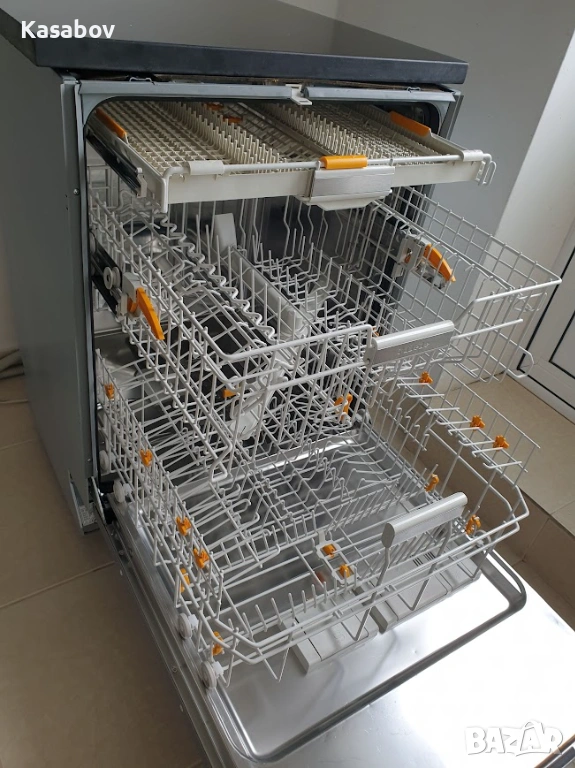 Във всички съдомиялни Miele височината на горната кошница се регулира лесно – дори в наклонено положение. Възможни са 9 положения. По този начин можете да използвате пълноценно отделението за миене при всяка употреба на съдомиялната