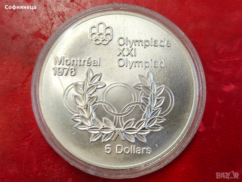 Олимпийски кръгове и венец.