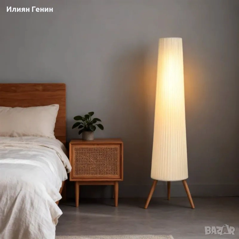 ✔ Северният дизайн на подовата лампа с дървен статив и текстилен абажур подобрява декора на вашата стая