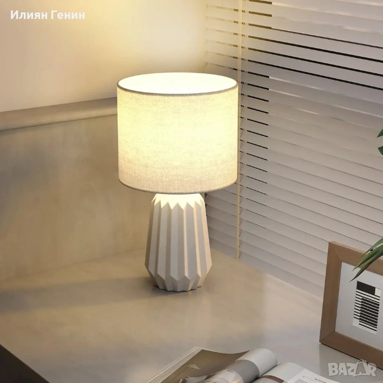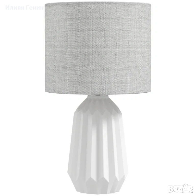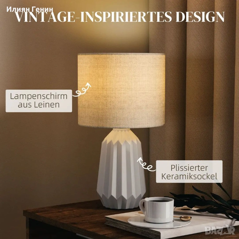 Дизайн, вдъхновен от винтидж стил: С плисираната си керамична основа и бял ленен абажур, тази настолна лампа предлага класически дизайн, който мигновено ще добави елегантност към вашата среда за спане или работа.