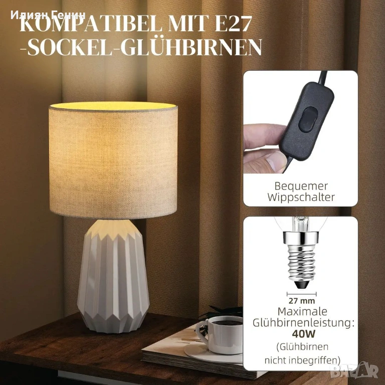 ✔ Винтидж плисираната керамична основа на нощната лампа добавя артистичен щрих към вашия декор.