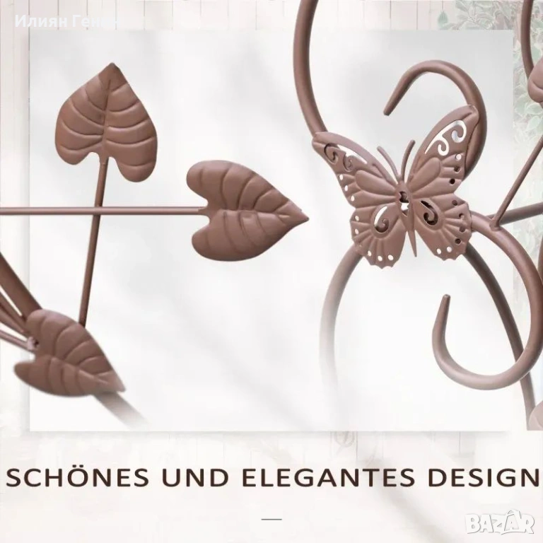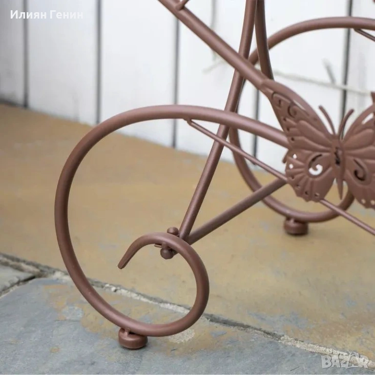 Стилен дизайн: Закачливите извивки на стойката за растения във френски стил са прекрасна декорация за вашата градина.