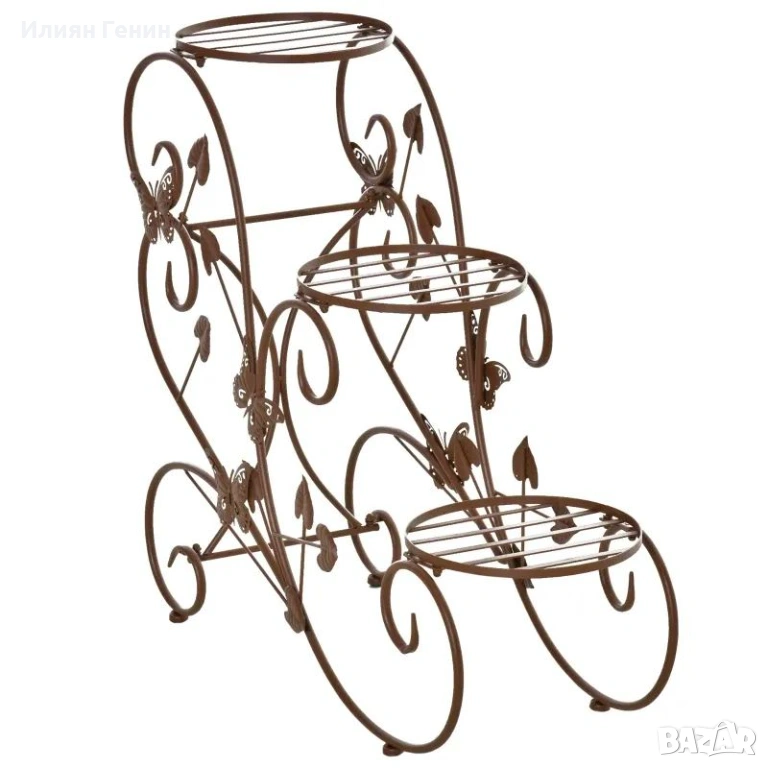 Метална стойка за растения: Очарователната триетажна стойка е изработена от висококачествен метал и е много стабилна.