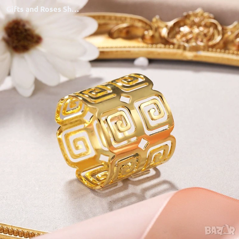 Метални пръстени за салфетки Silver / Gold с класически гръцки мотив → Обява 53627155
