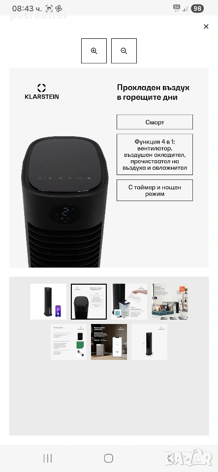 KLARSTEIN - Вентилатор, охладител, пречиствател и овлажнител на въздуха., снимка 1 - Вентилатори - 53627278 KLARSTEIN - Вентилатор, охладител, пречиствател и овлажнител на въздуха., снимка 2 - Вентилатори - 53627278 KLARSTEIN - Вентилатор, охладител, пречиствател и овлажнител на въздуха., снимка 3 - Вентилатори - 53627278 KLARSTEIN - Вентилатор, охладител, пречиствател и овлажнител на въздуха., снимка 4 - Вентилатори - 53627278 KLARSTEIN - Вентилатор, охладител, пречиствател и овлажнител на въздуха., снимка 5 - Вентилатори - 53627278 KLARSTEIN - Вентилатор, охладител, пречиствател и овлажнител на въздуха., снимка 6 - Вентилатори - 53627278 1/6