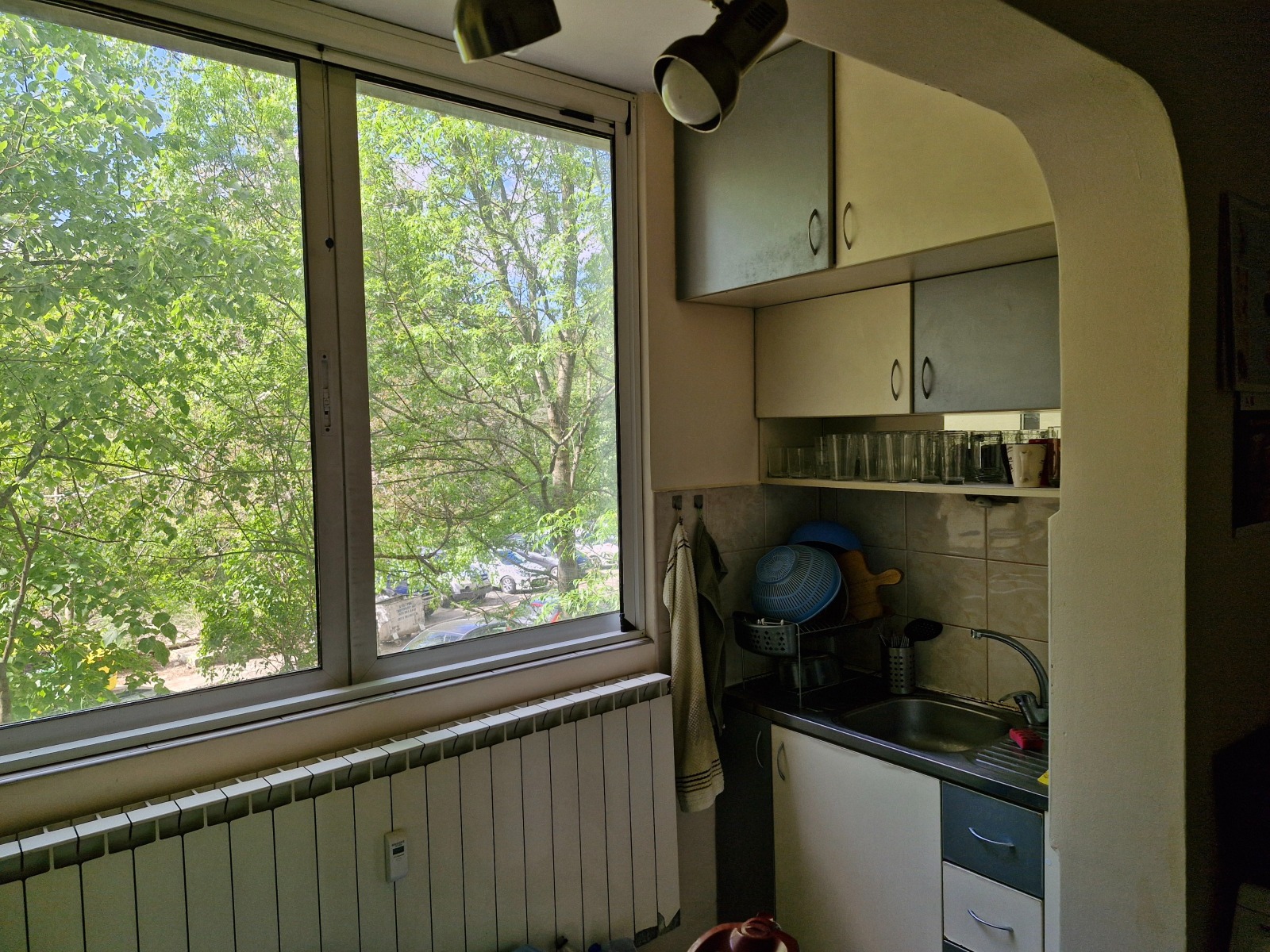 Слънчев, тих, уютен 4-стаен апартамент. Състои се от 3 непреходни стаи, отделно кухня с трапезария + 2 бани с тоалетна. Напълно обзаведен. Бойлер неръждаем 80л. Климатици във всички стаи. Сменени алуминиеви радиатори, сменена алумин. дограма с двоен термомост. Изгледи: Към Витоша (Юг), към Ловен парк (запад) и към вътр.детска площадка (изток). Всяка стая с излаз към тераса. Терасите не влизат в кавадратурата. Подове: Гранитогрес-коридор и кухня, ламинат в стаите, теракот - бани. Сградата е санирана - много топъл! Добре поддържан вход. Намира се на 5м. от входа на Ловен парк и на 5 мин. пеша от спирки на автобуси и метро. Безплатни паркоместа зад сградата. Без комисионна за агенции