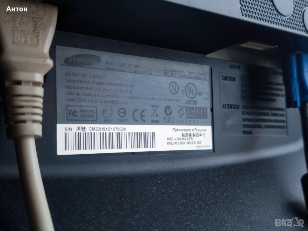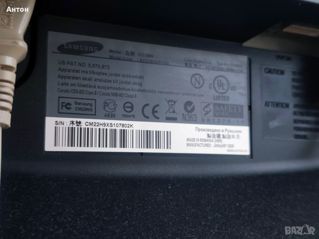 Монитор Samsung 22" инча, модел 2233BW → Обява 53627531