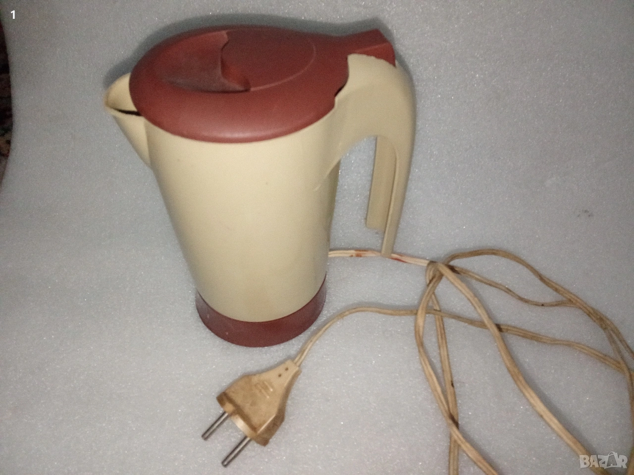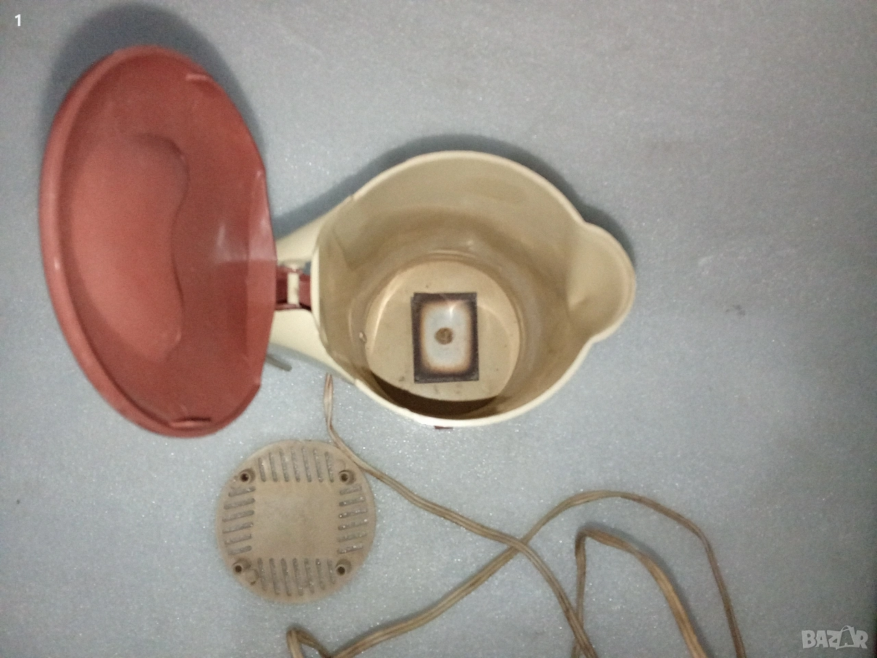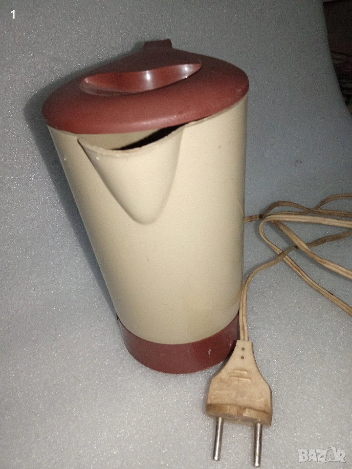Електрическа чаша за топлене на вода. Не трябва да се докосва по време на работа, понеже е под напрежение.