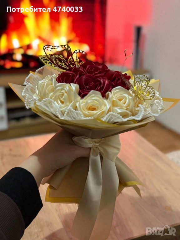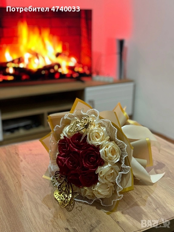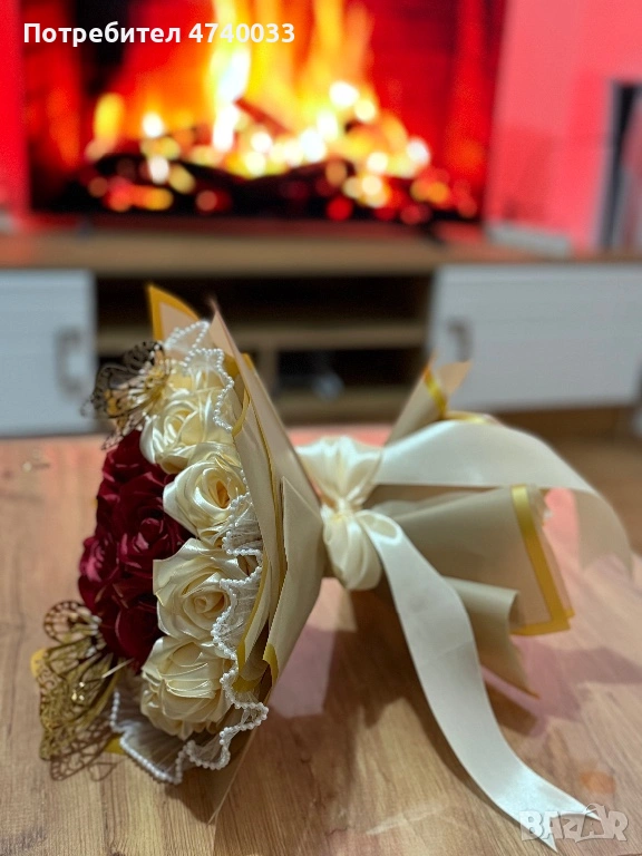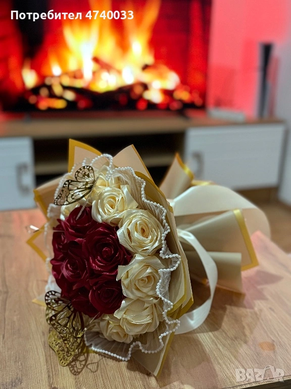 Вечен букет от ръчно изработени сатенени рози → Обява 53627630