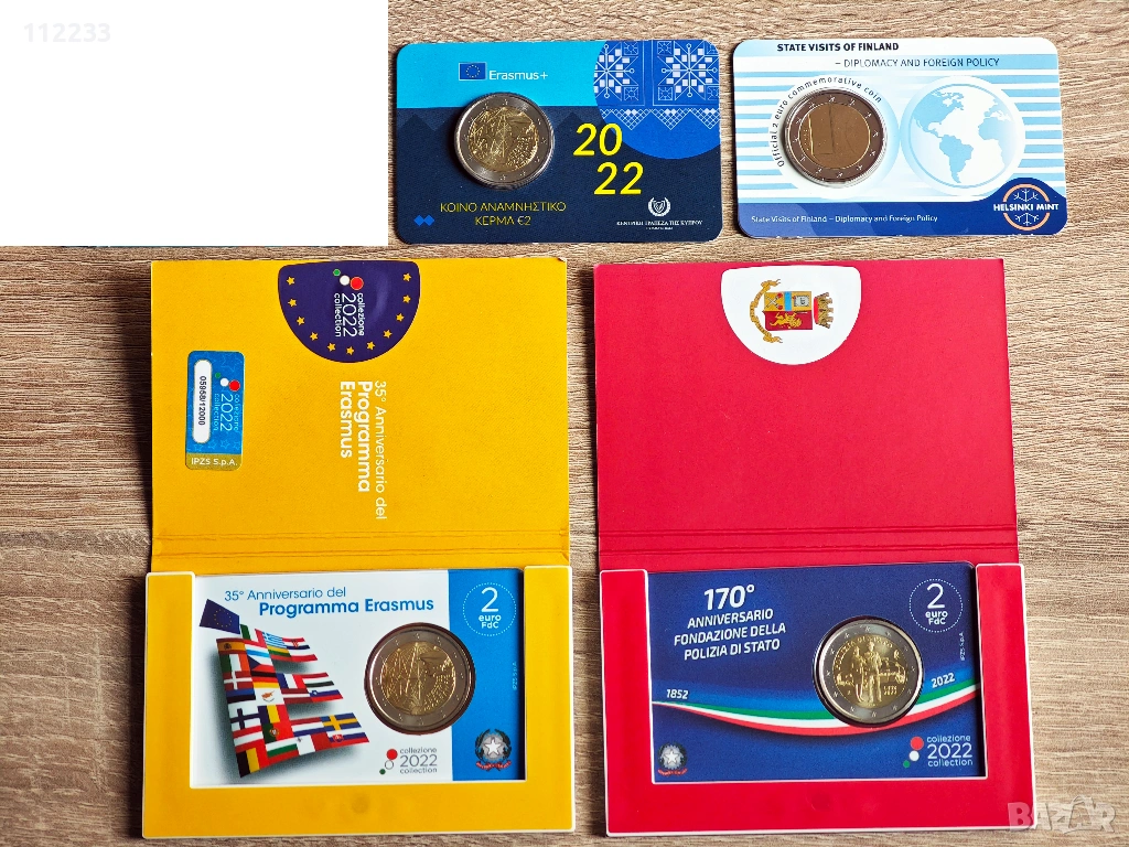 4 броя 2 евро монети в карти. Дават се за 50 евро общо!! Предпочитам лично предаване в Пловдив или плащане по Револют или по банкова сметка. С наложен платеж НЕ!